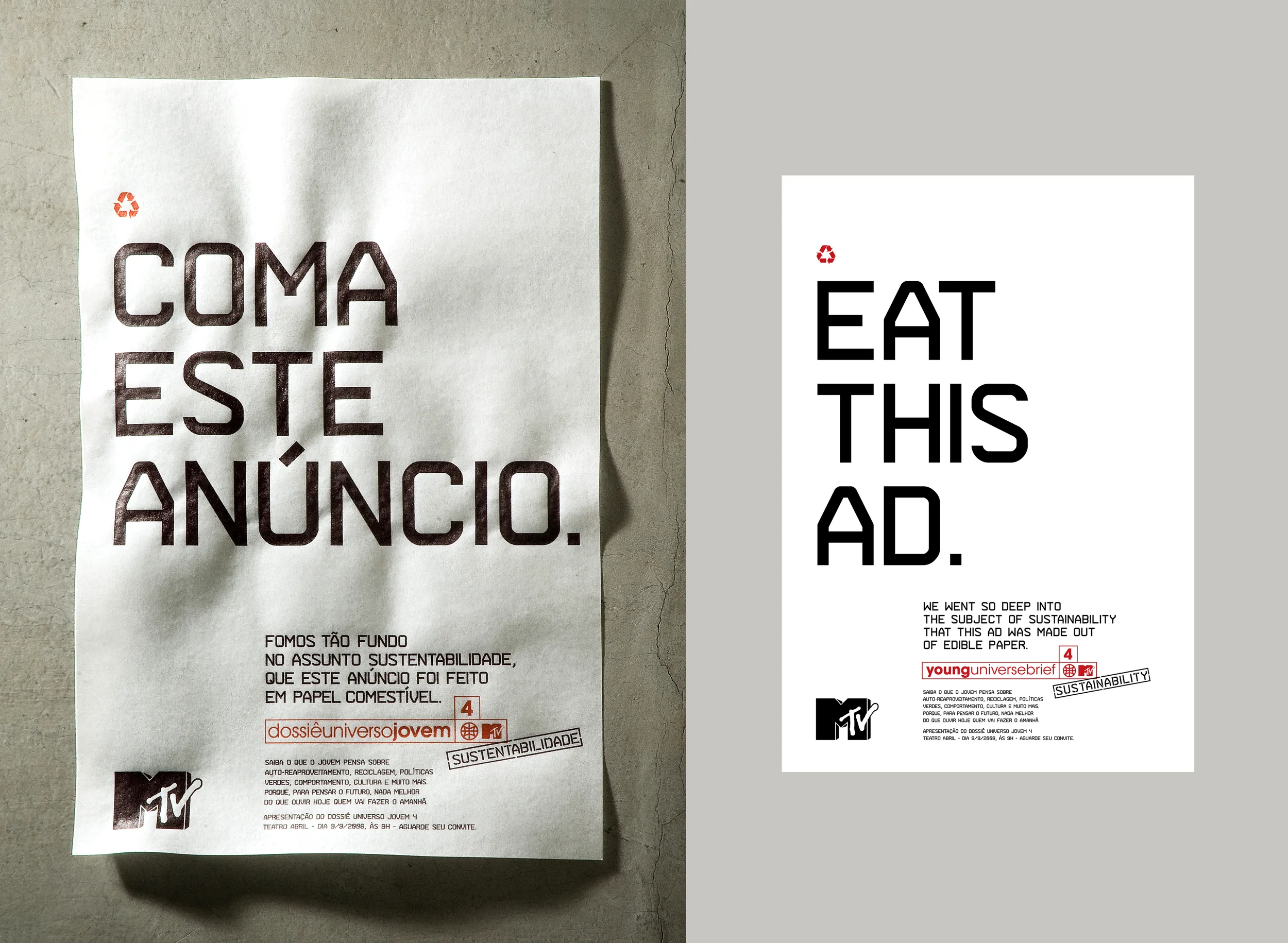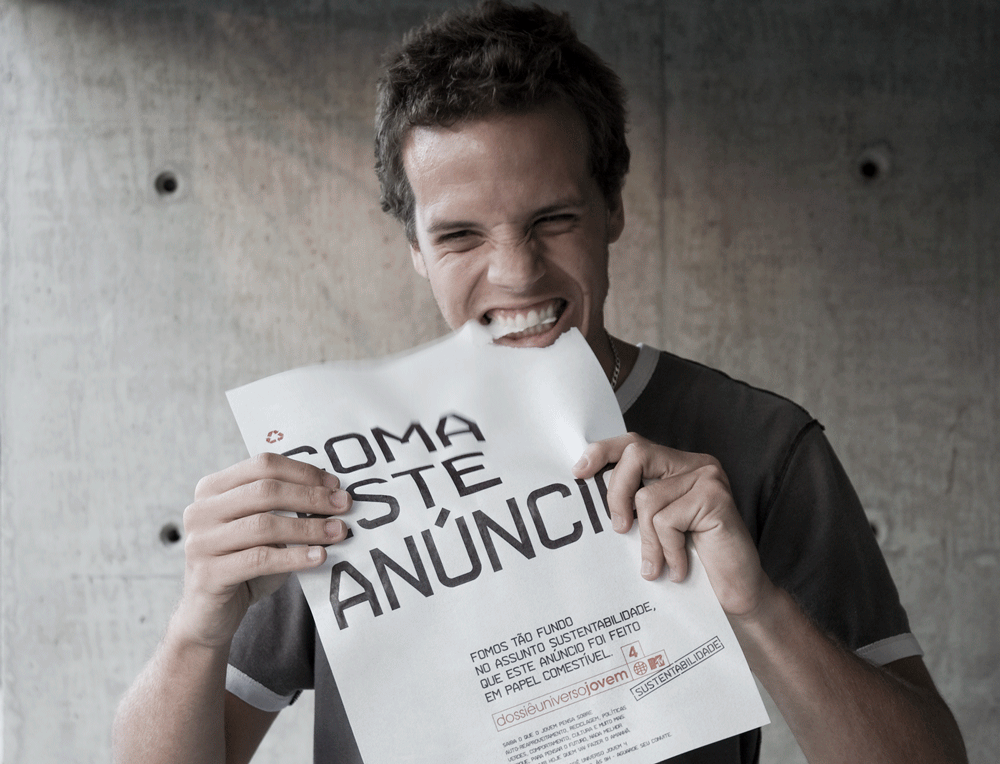 To promote the MTV Young Universe Brief on sustainability, we created an edible ad made of sustainable paper.